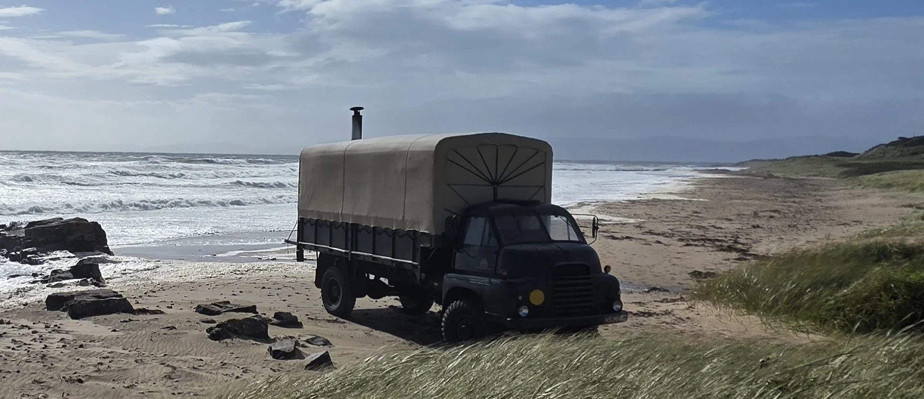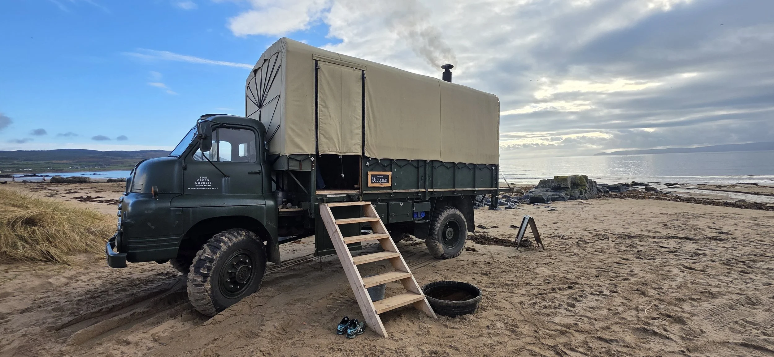 A Vintage truck lovingly converted into a traditional wood fired sauna, set on Arran’s best beach,